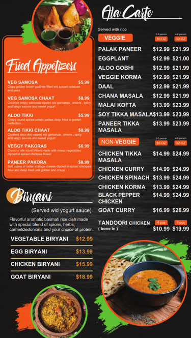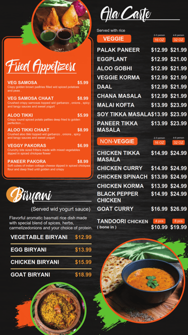 Explore our vibrant dishes and colorful Indian cuisine